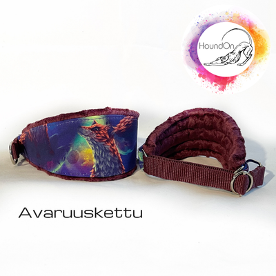 Leveä, vinttikoiramallinen puolikiristävä panta, pehmeällä vuorella ja kiristysnauhan stopparilla.